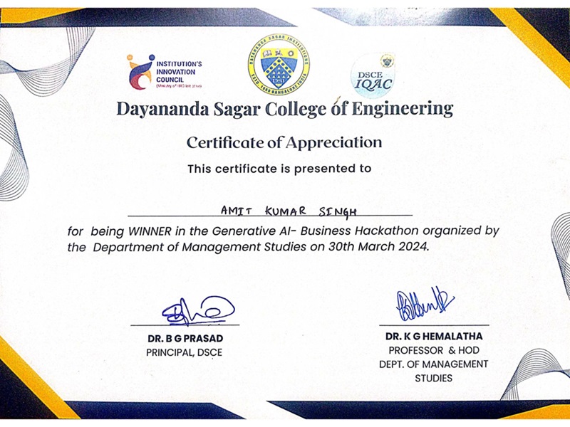 • College: Dayananda Sagar College of Engineering - Bangalore