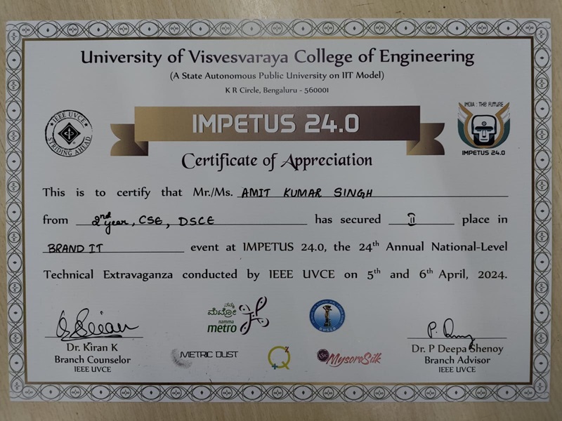 • Participated in a hackathon at the Indo-Korea Science and Technology Center, collaborating on innovative projects.