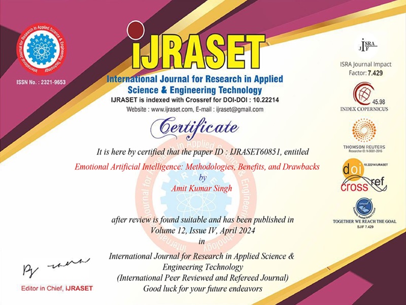 • Interned at Soft Computing Research Society-VIT, gaining valuable insights into machine learning.